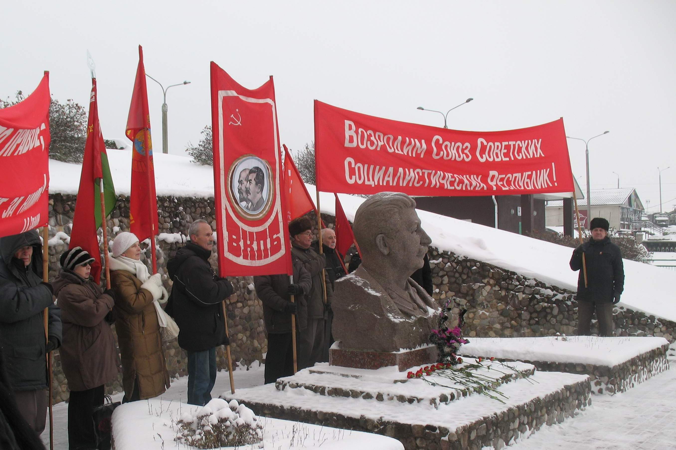 21 декабря 2018 года большая делегация общественных объединений, образовавших Координационный совет лево-патриотических сил Белоруссии «Единство» возложила цветы к памятнику-бюсту И.В.Сталина в Историко культурном комплексе «Линия Сталина». Цветы были возложены также к бюсту И.А.Сталина а Государственном музее истории Великой Отечественной войны. Ниже публикуется принятое участниками возложения цветов обращение к Президенту Республики Беларусь А.Г.Лукашенко. Президенту Республики Беларусь А.Г. Лукашенко ОБРАЩЕНИЕ лево-патриотических организаций Белоруссии, образовавших Координационный Совет «ЕДИНСТВО», общественности Республики Беларусь об увековечивании памяти И.В. Сталина в столице … Читать далееМинск. Возложение цветов к памятникам И.В.Сталина.